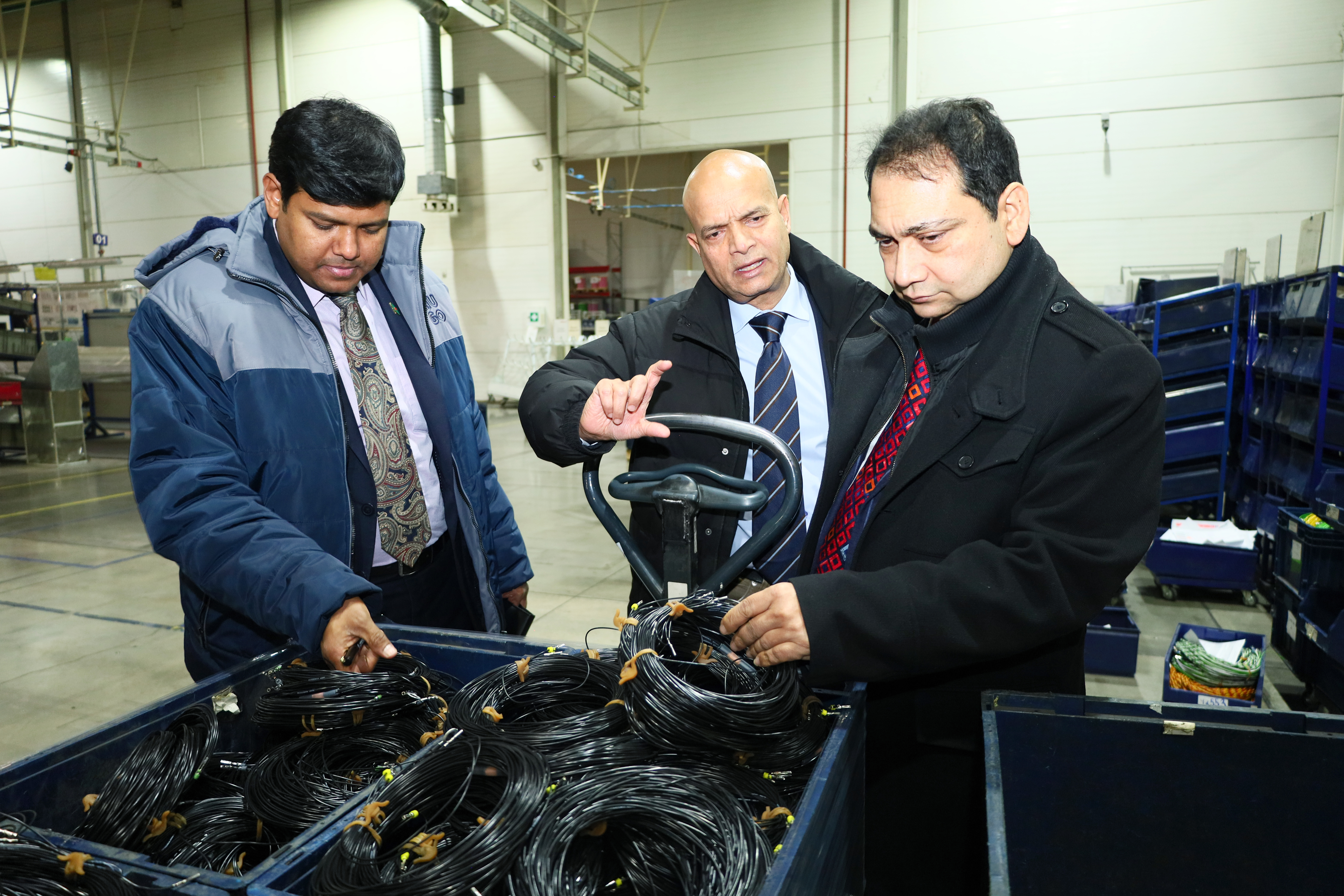 Для знакомства с деятельностью резидентов делегации продемонстрировали производственные процессы на площадке №1. Булат Шарафутдинов, директор по инжинирингу ООО «Прекаб», рассказал о распределении производственных мощностей: на территории КИП «Мастер» осуществляется заготовка проводов, а на отдельной площадке – их последующая обмотка. Гостям были представлены готовые жгуты проводов.